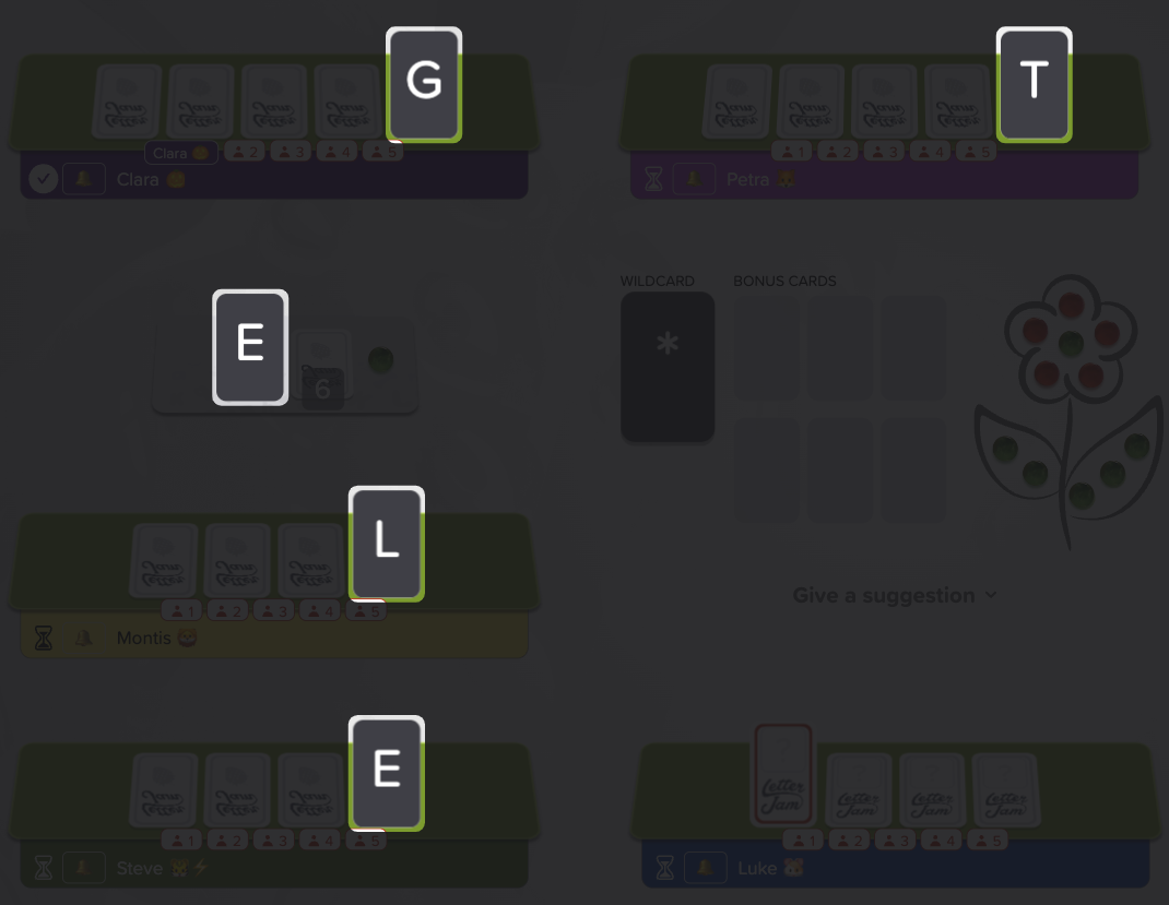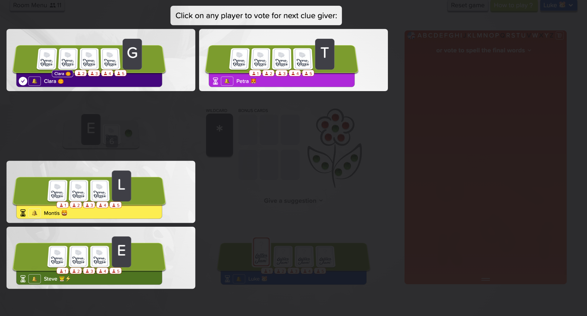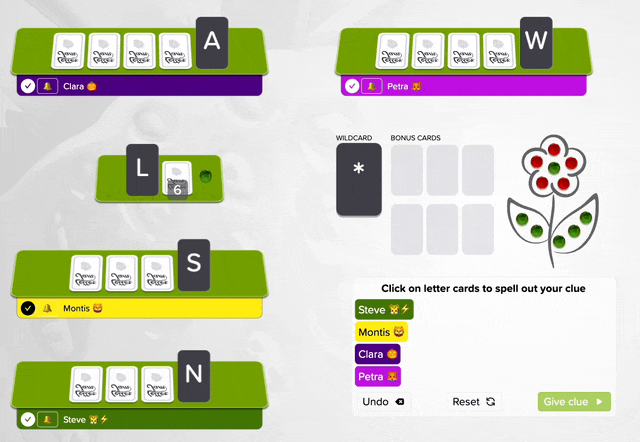 Red tokens are taken first - each player must give at least 1 clue (2 clues in a 3-player game, 3 clues in a 2-player game) to make any green tokens in the center of the flower available